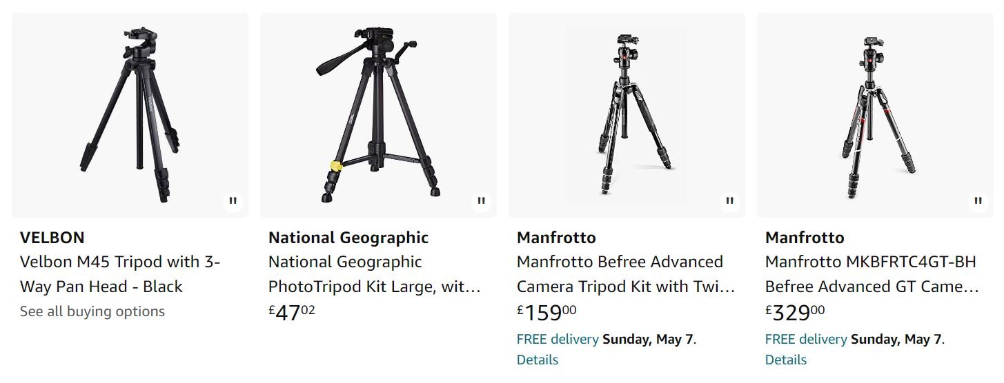 A tripod is an essential tool for photographers who want to capture sharp and stable photographs, especially in low light conditions or with slow shutter speeds. Here are some suggestions for recommended tripods.